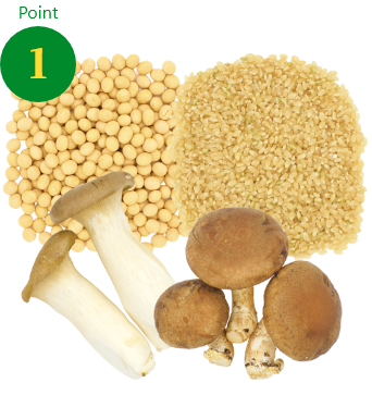 タカキビやオートミール、玄米を使用し、ジューシーでコクのある食感を再現。カットサイズの大きなきのこ類と7種類の国産野菜を組み合わせ、しっかりとした食べ応えを実現しました。